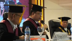 Dr. Ronny F. Sompie, SH., MH., salah satu penguji, memberikan apresiasi atas keberhasilan Agung Nugroho dalam memperkuat konsep hak cipta sebagai jaminan fidusia di perbankan.